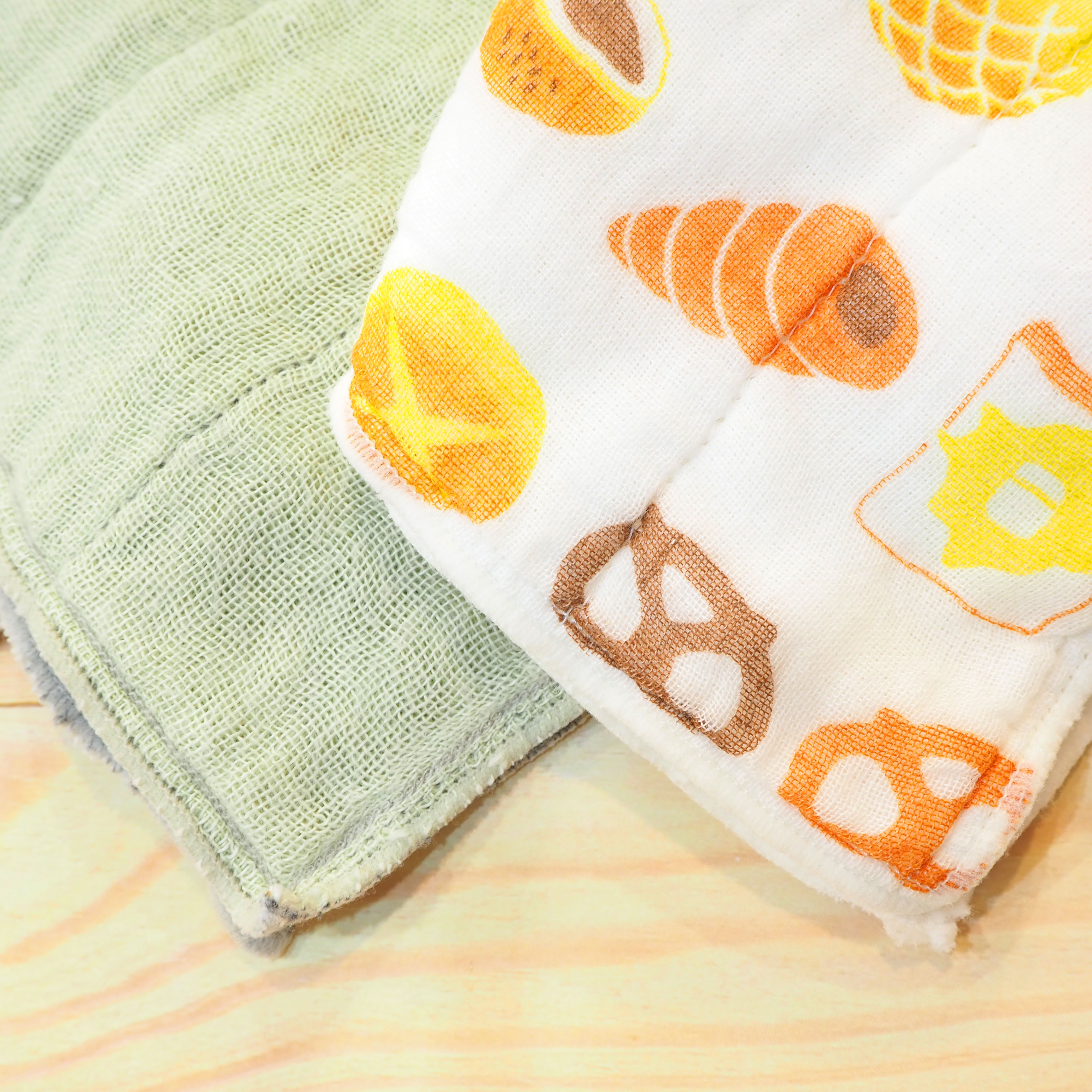 綿の生地と、レーヨンの生地を6枚あわせた蚊帳ふきんはならっぷ だけ。