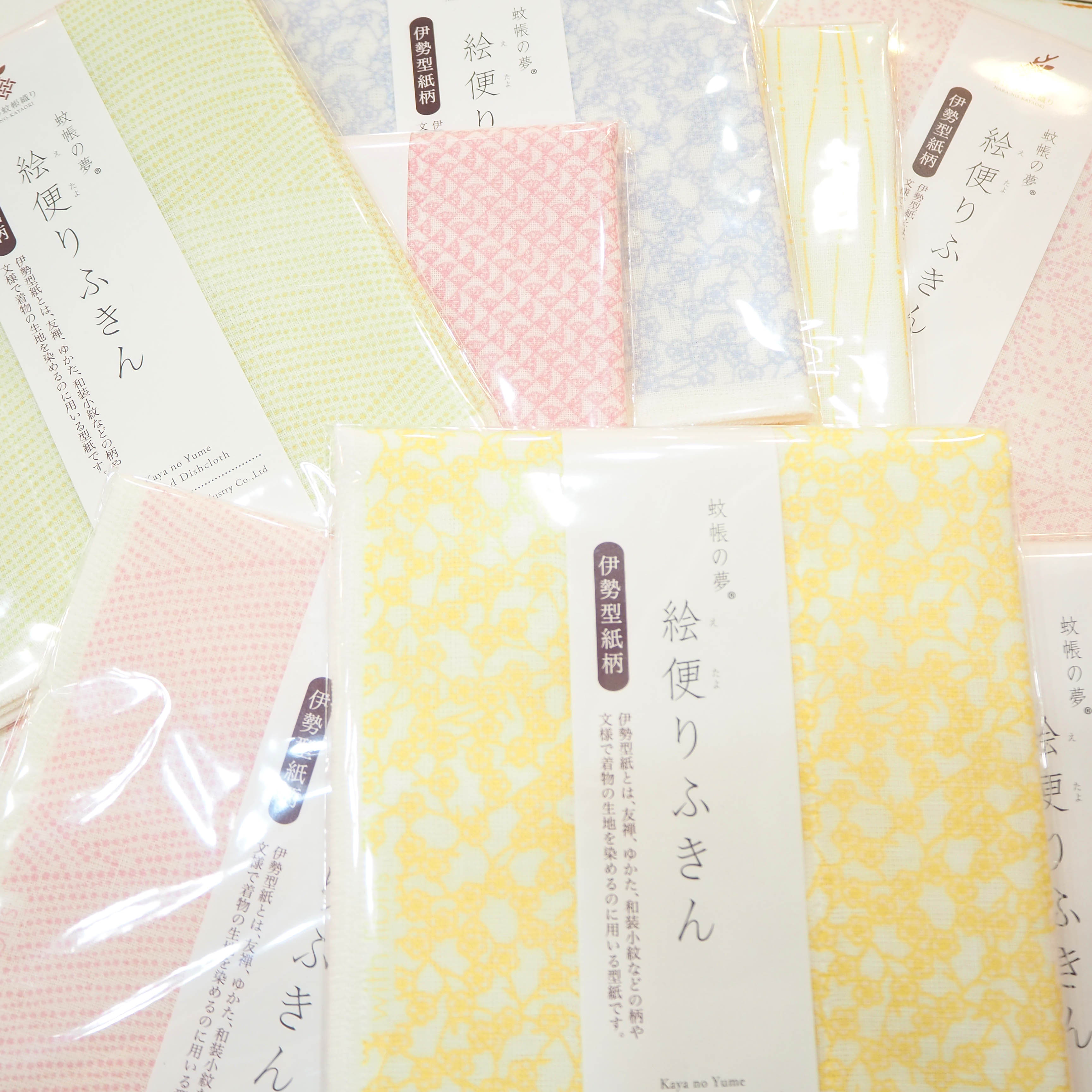 そのおふきんを、三重の伝統工芸「伊勢型紙」でお染めしました。