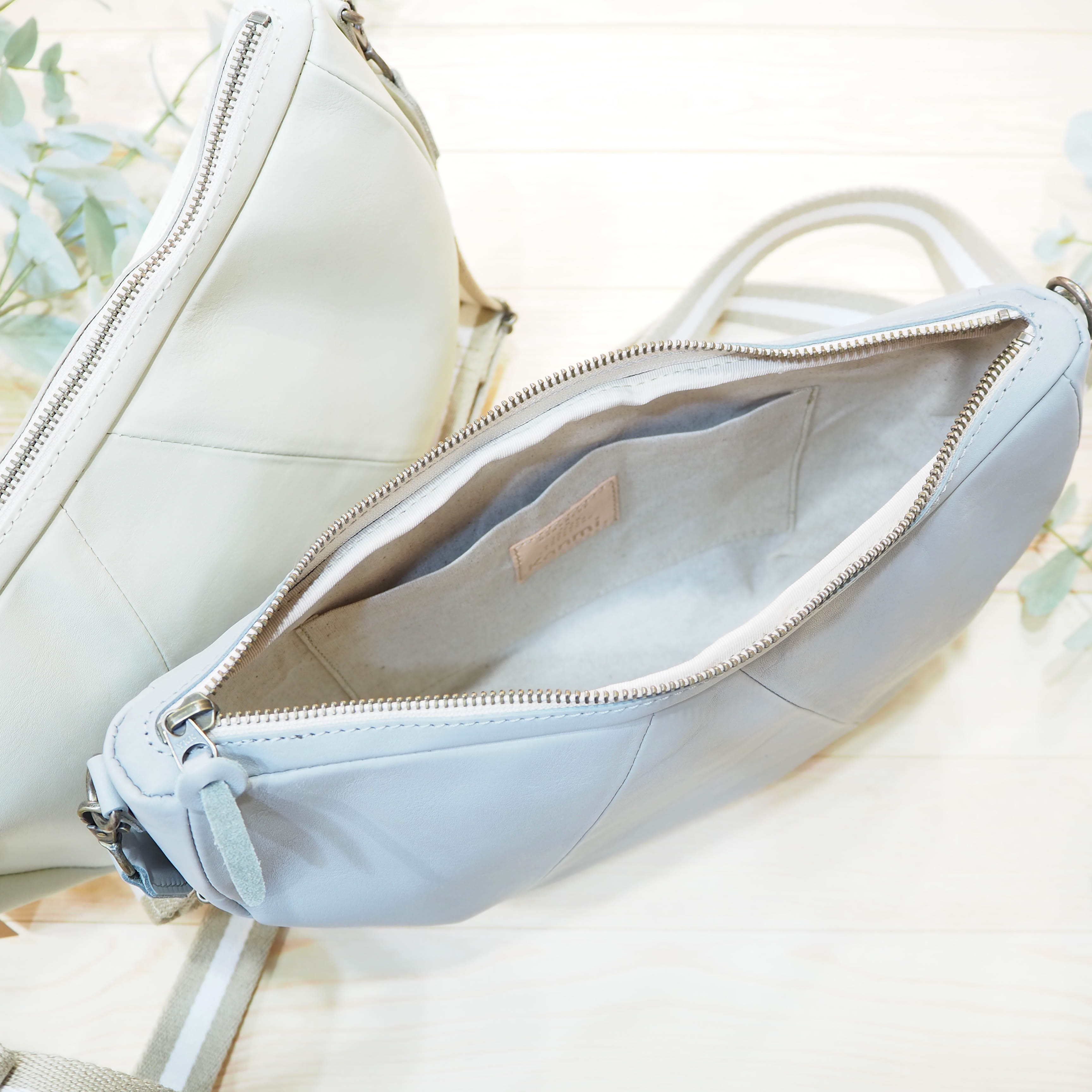 片手でもスッと開くファスナーには、本体と同じ革の引手がついています。