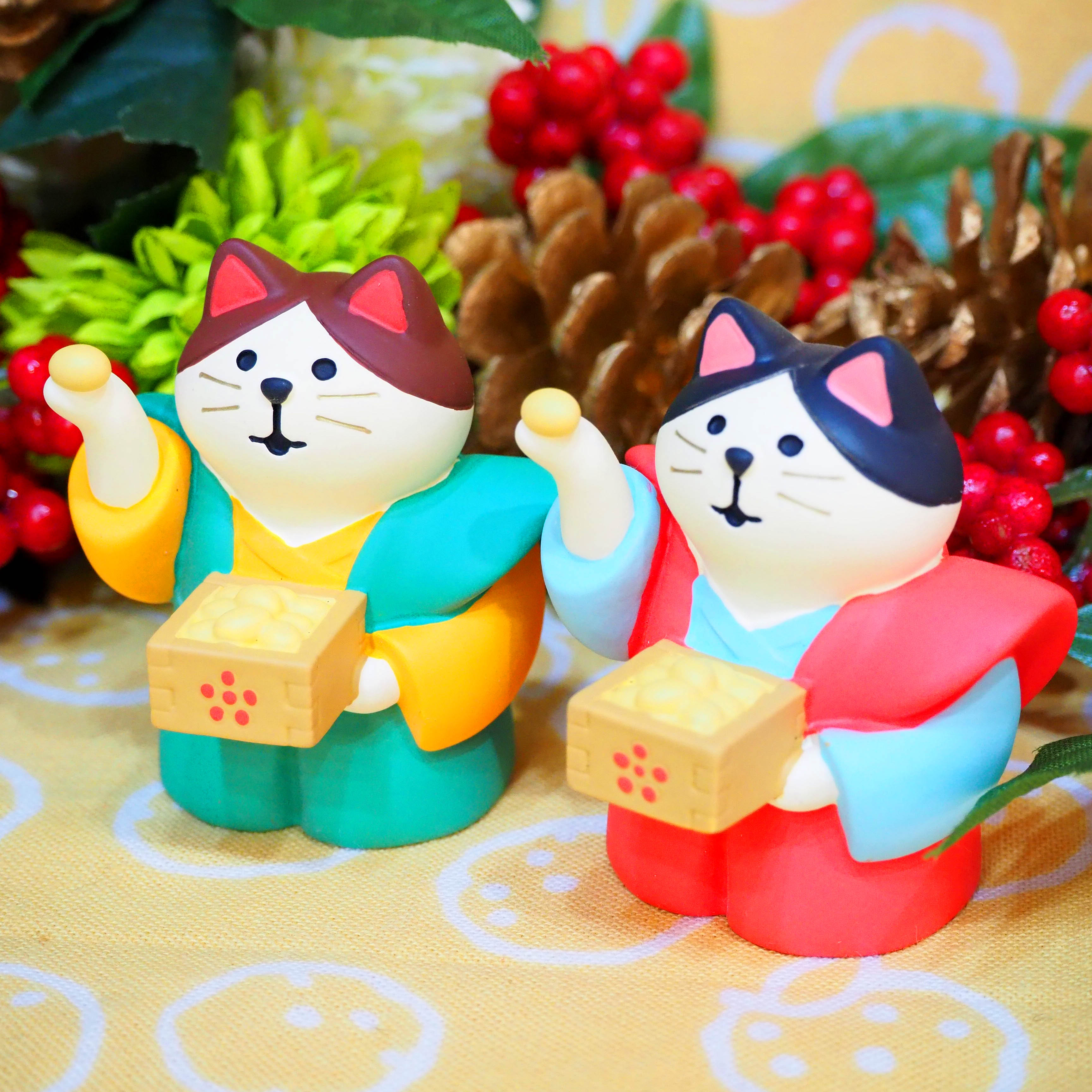 かみしも姿の猫さんが威勢よく撒く福豆、