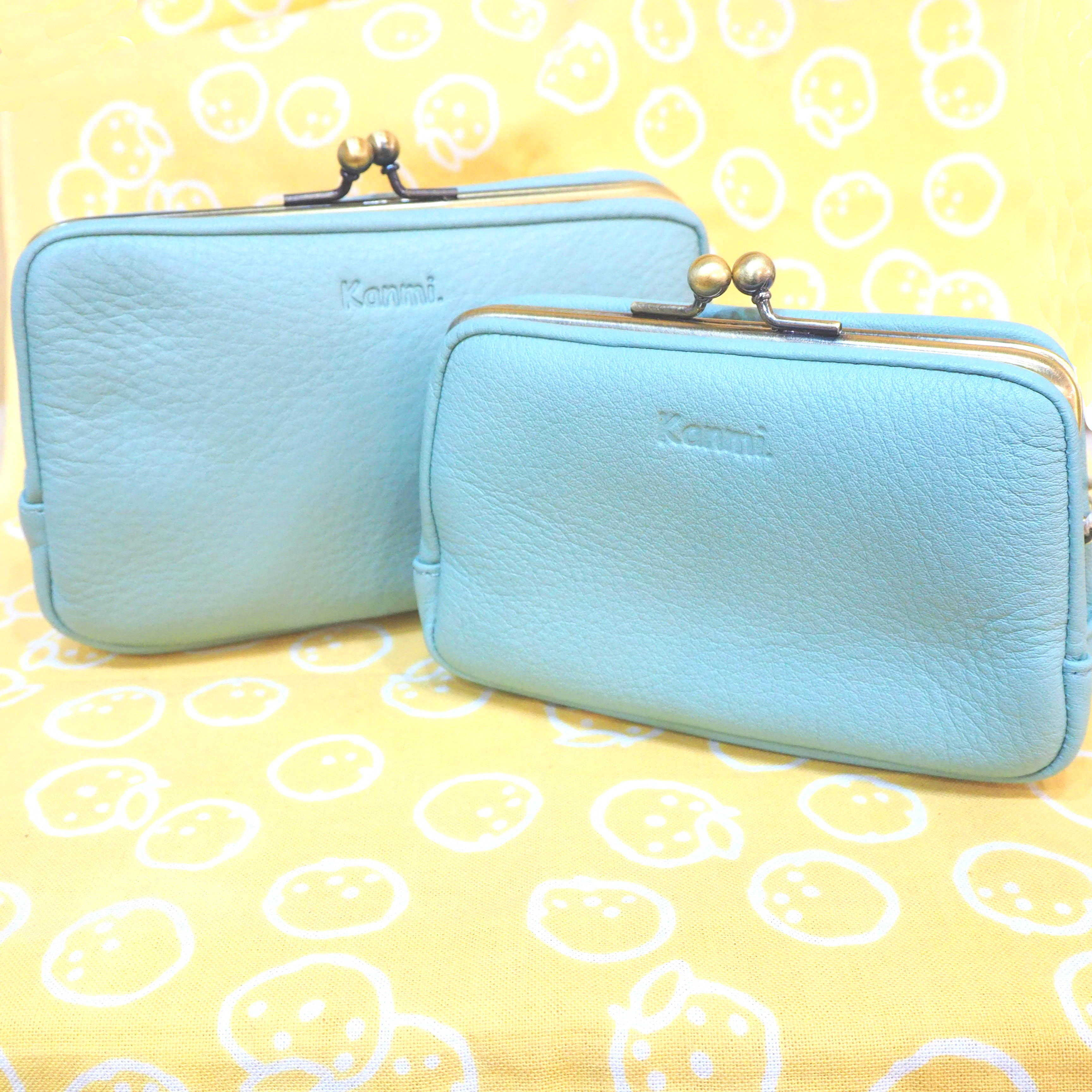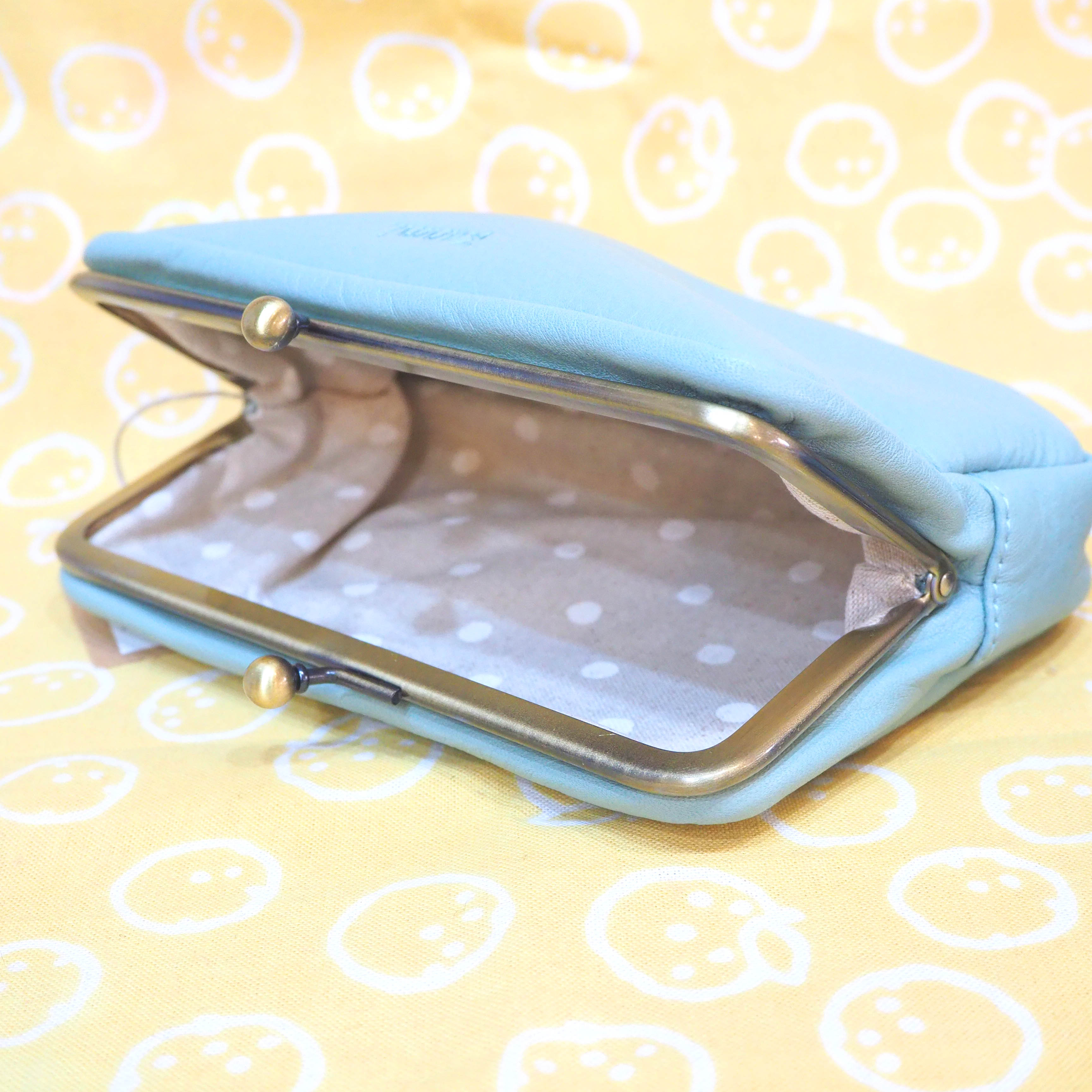 がま口を開けるとドットのファブリックがちらっとのぞいて、使っても眺めても楽しいデザインです。