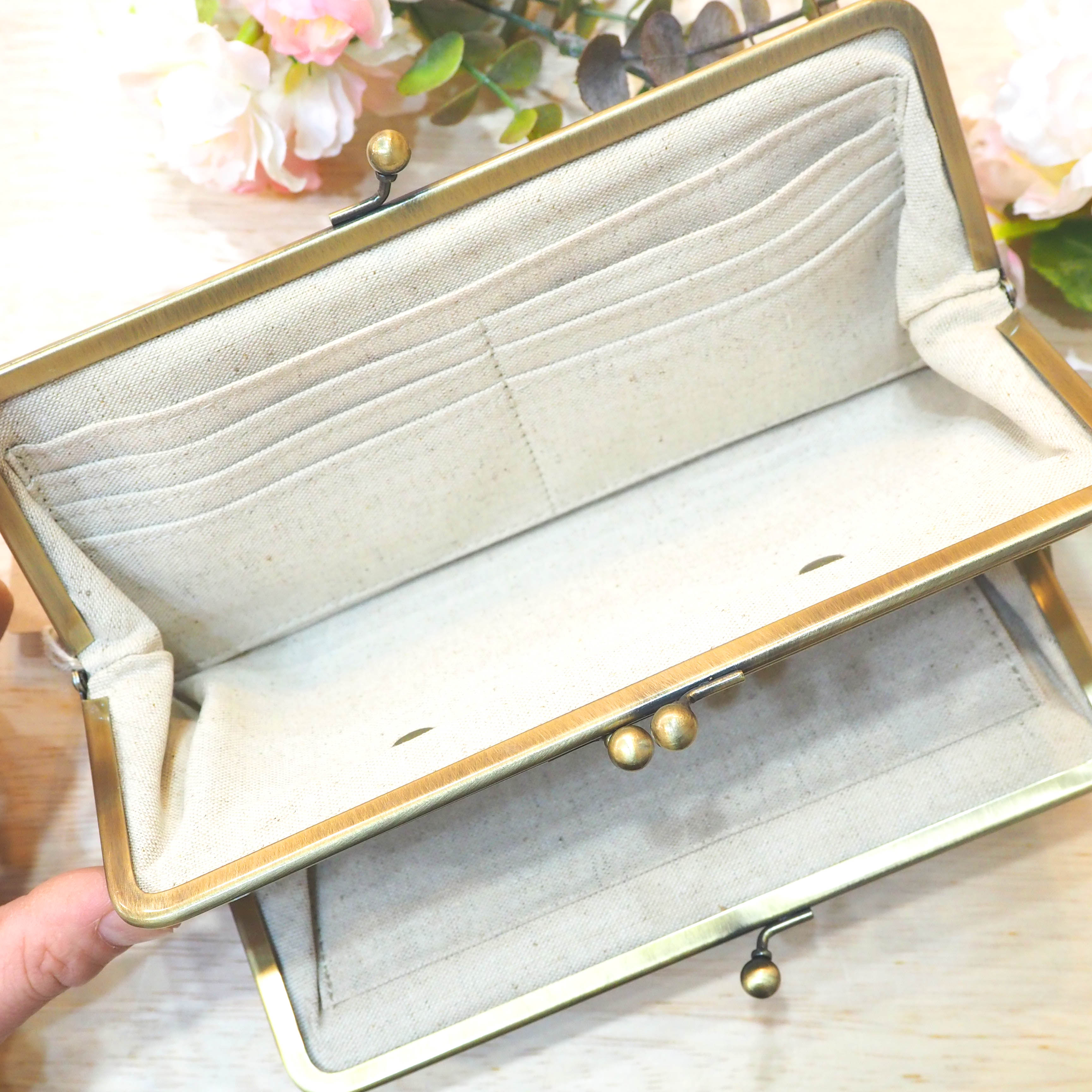 二つのがま口が一気に開いて、全部見渡せるのが魅力のひとつ。