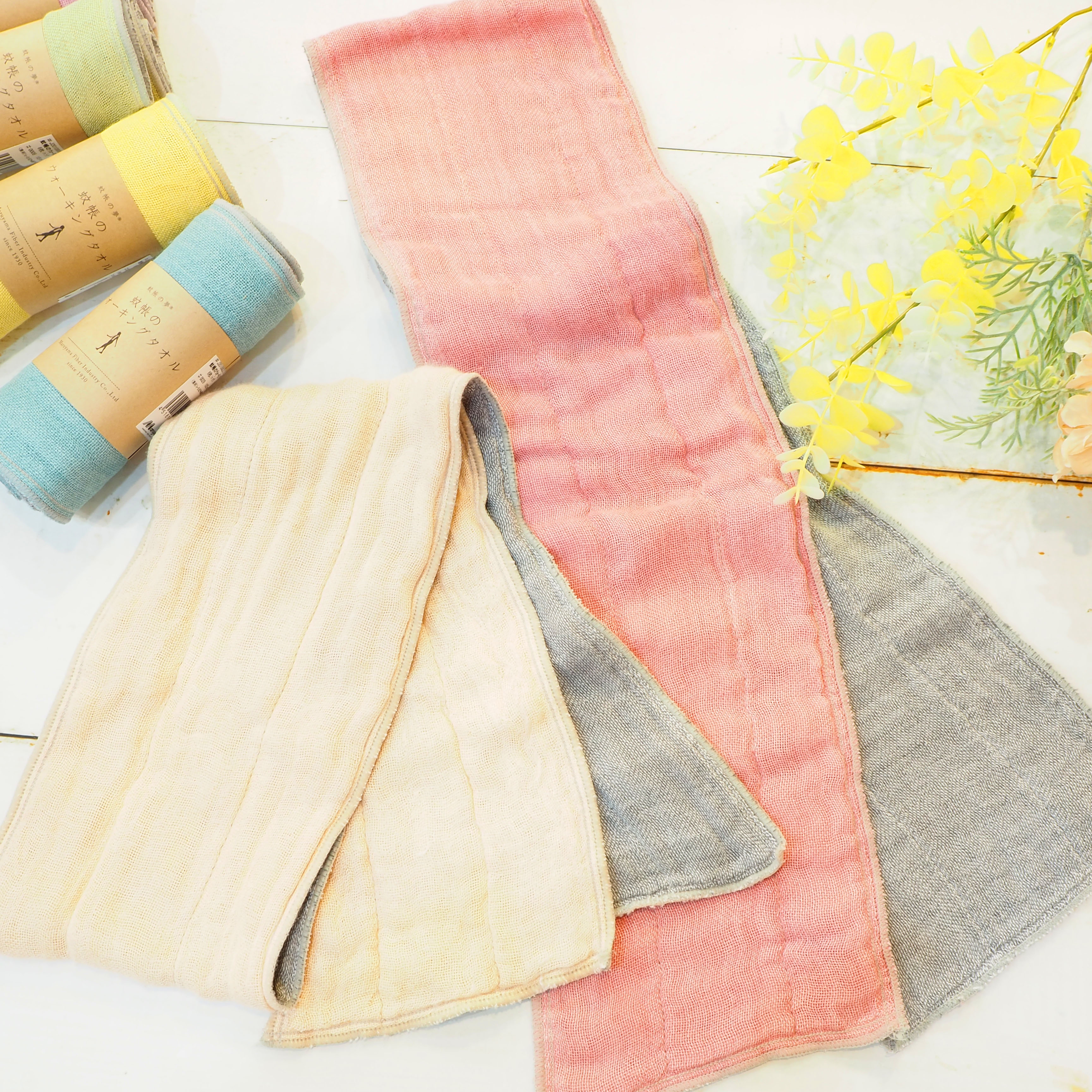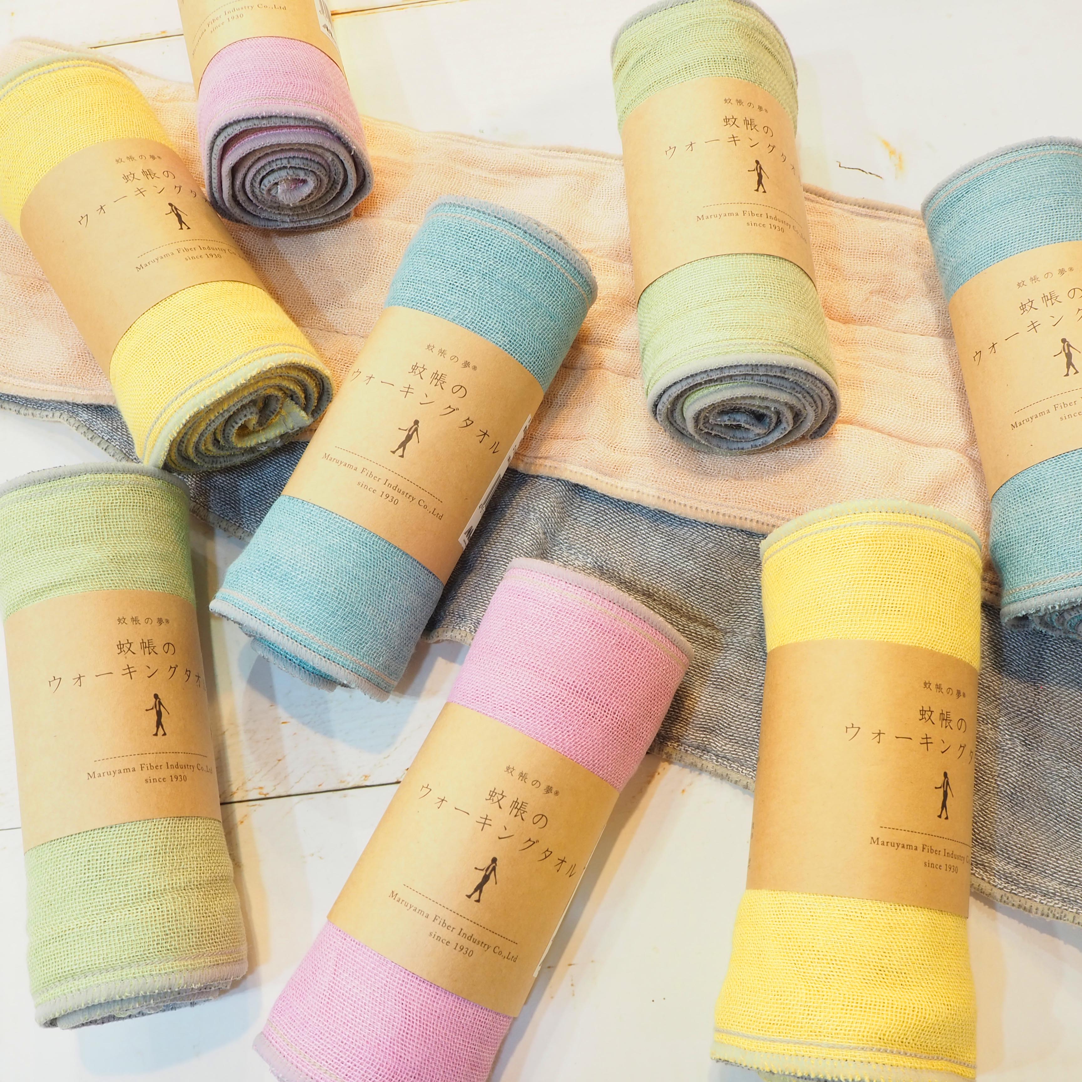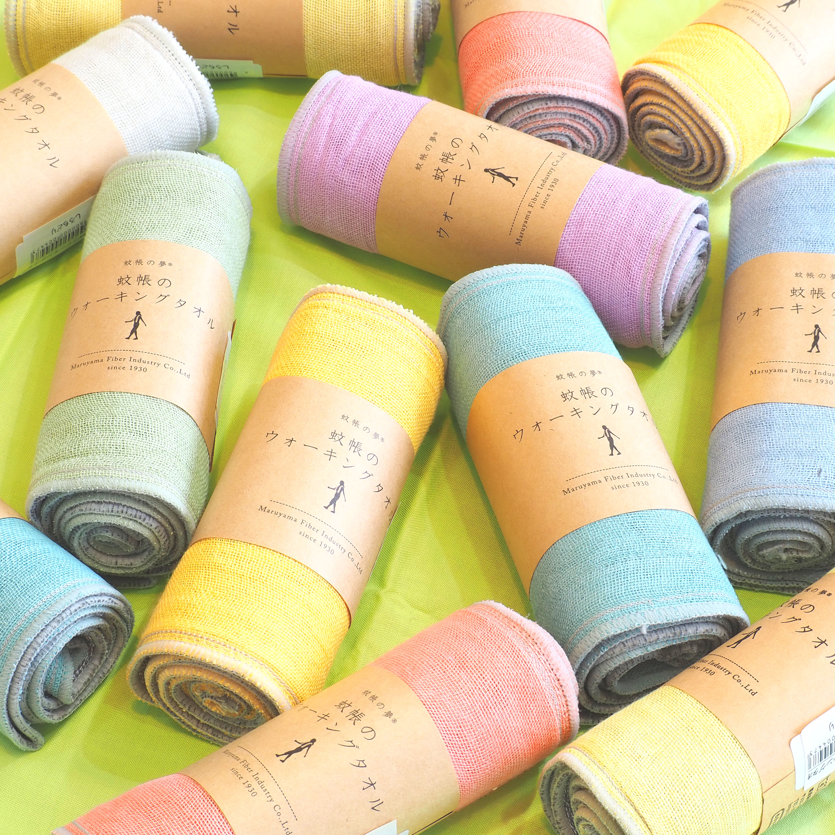 吸水性、速乾性の高い蚊帳生地ならではの特長を活かしたウォーキングタオル。