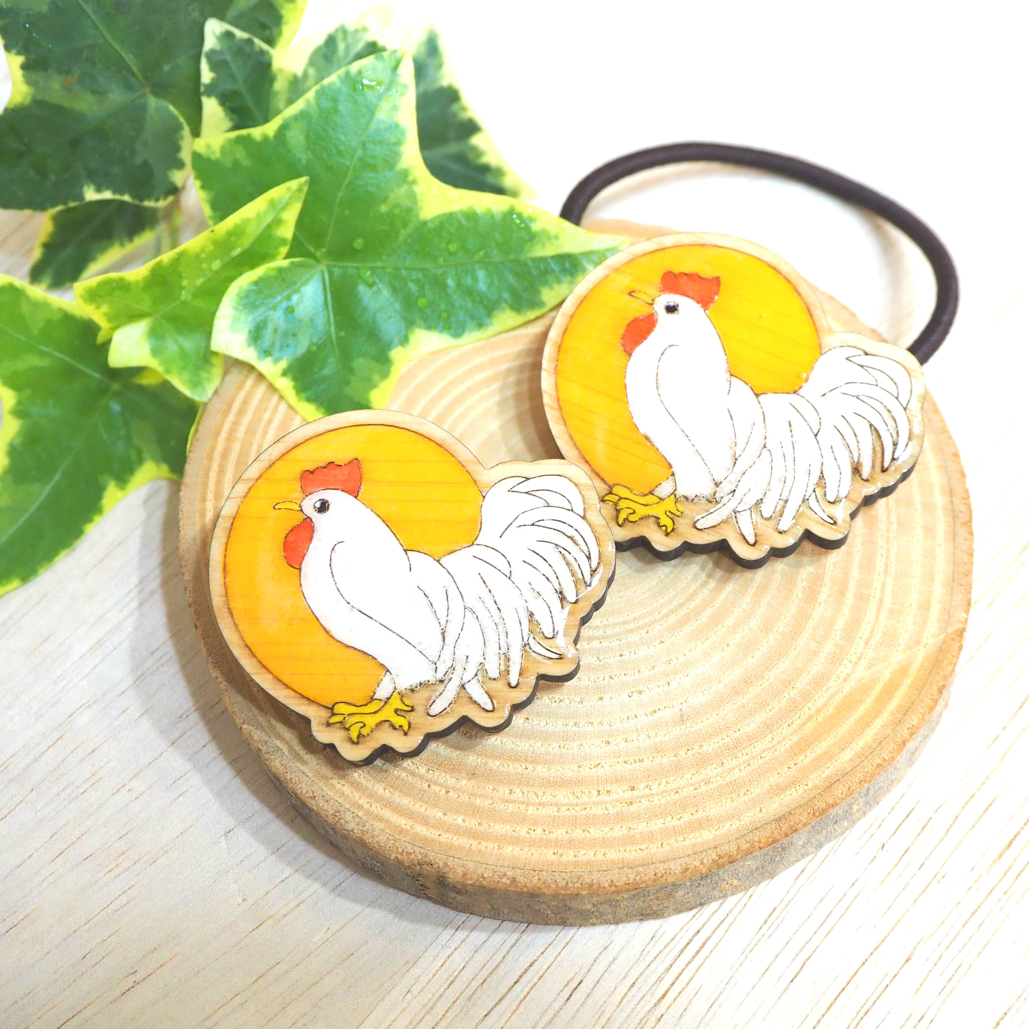 伊勢ひのき ウッドブローチ「太陽と神鶏さん」