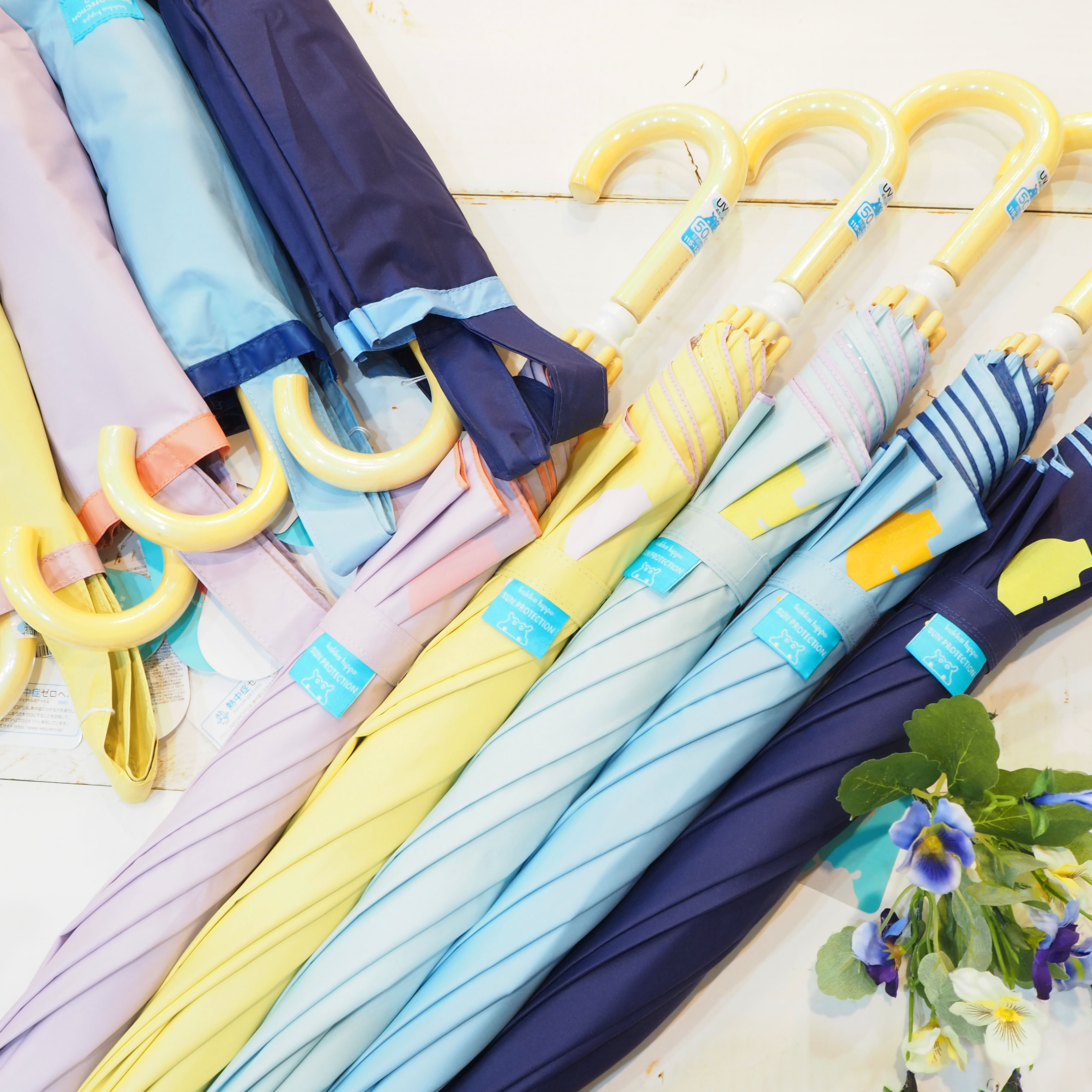 色とりどり咲く花のような色彩で雨の日がより楽しくなるように…。